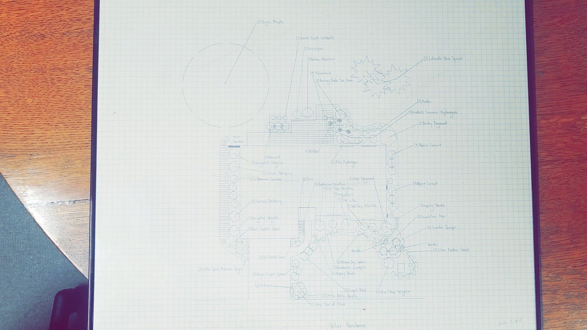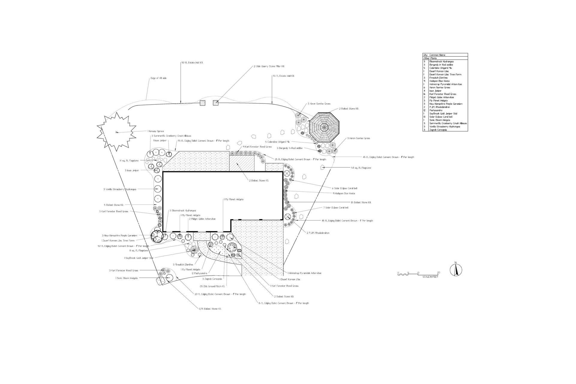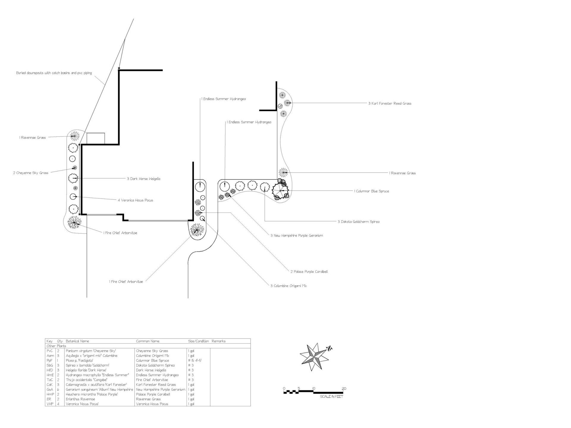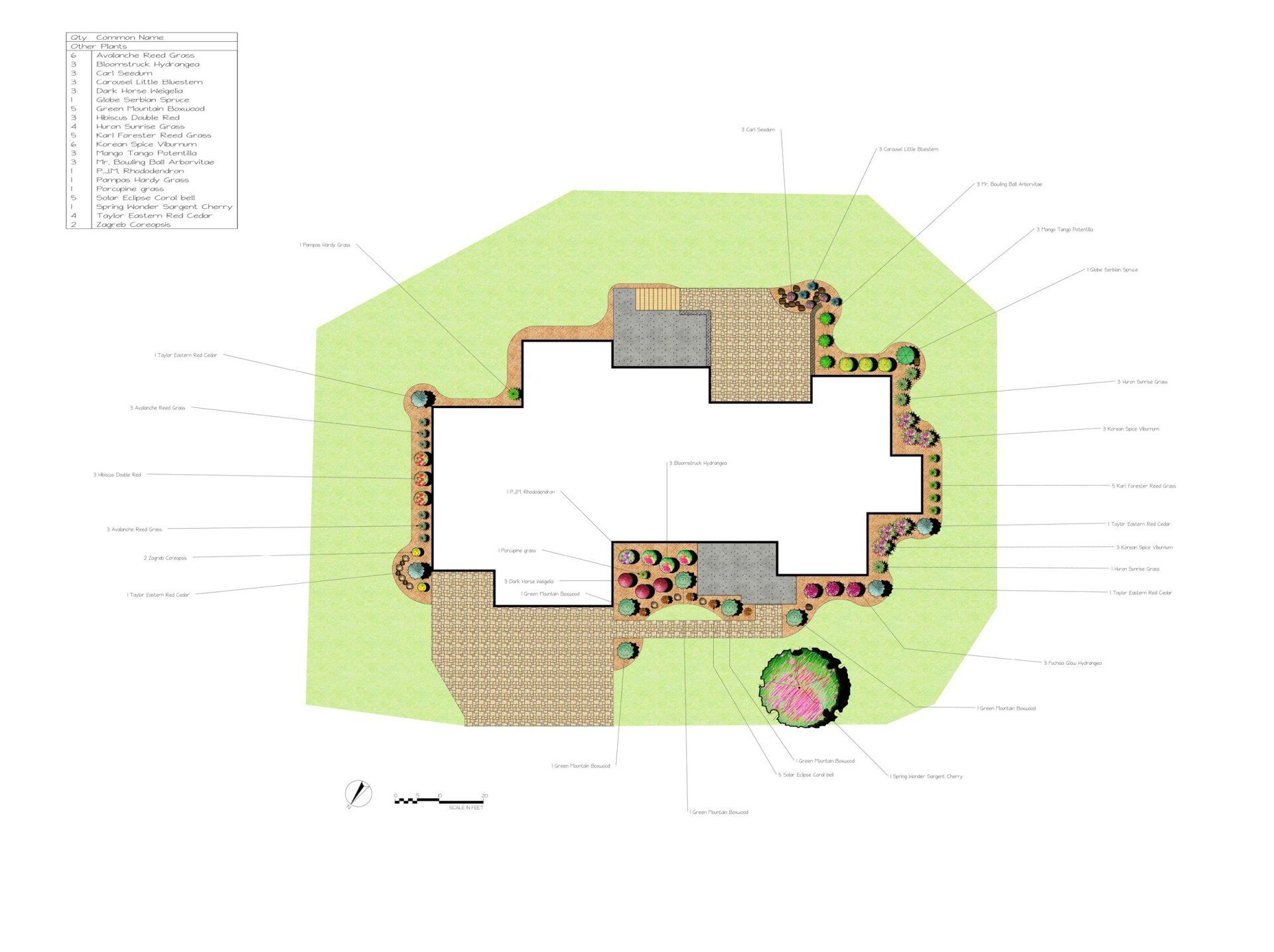 Using information gathered in the analysis state of the project and our experience in landscape design and construction, we develop the following: This drawing is done to scale and is all done by hand by a professional, experienced landscape designer.