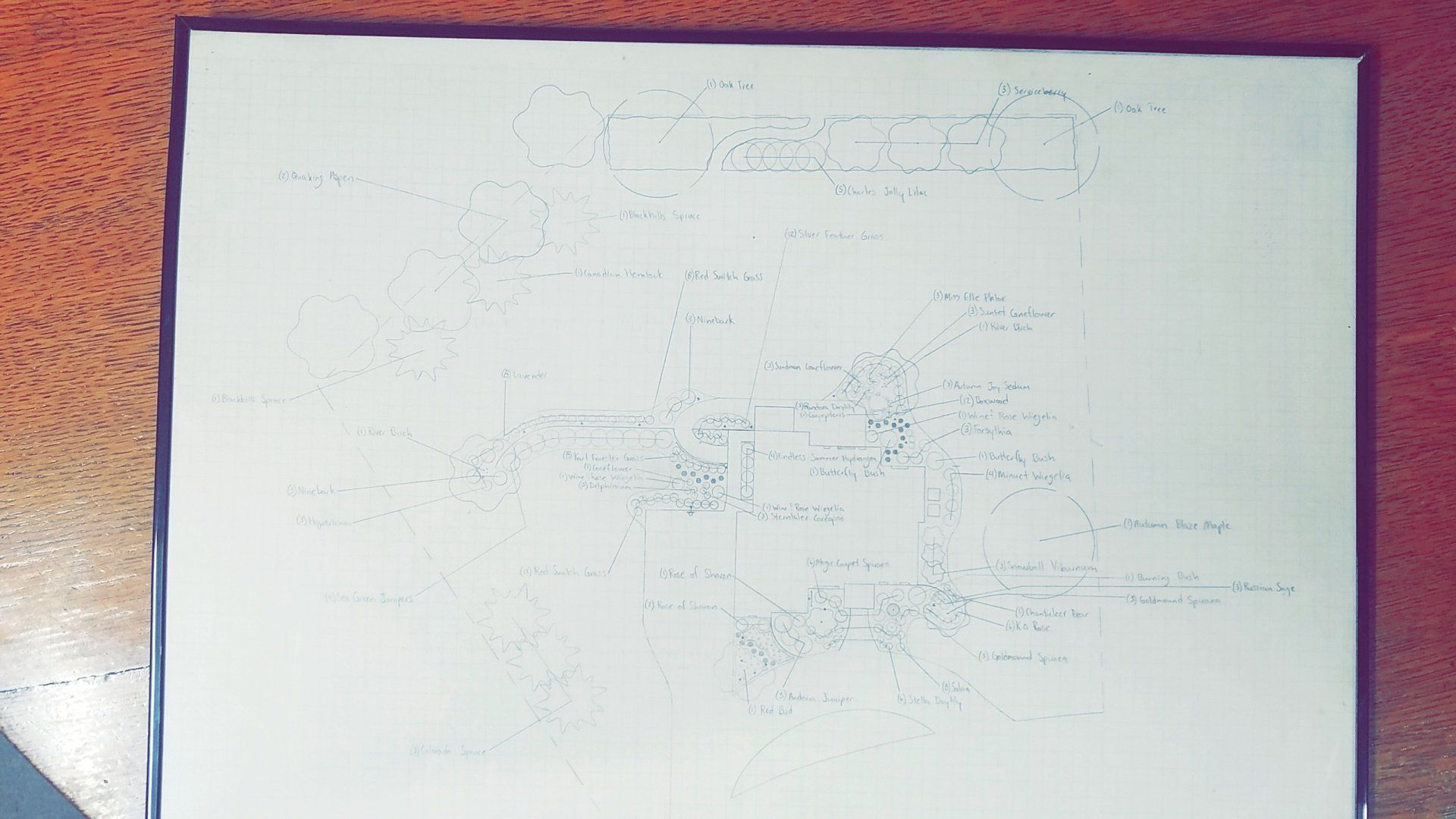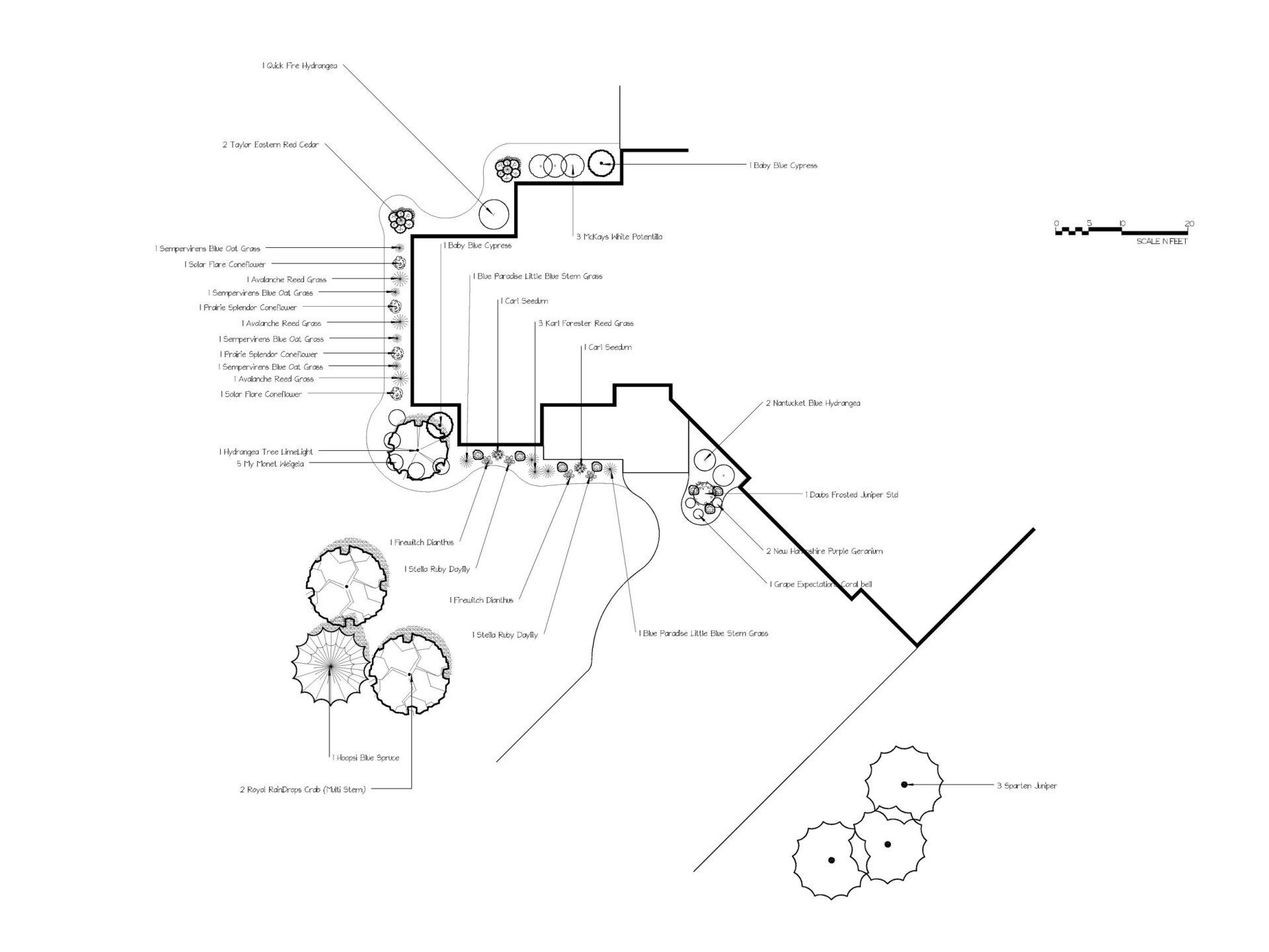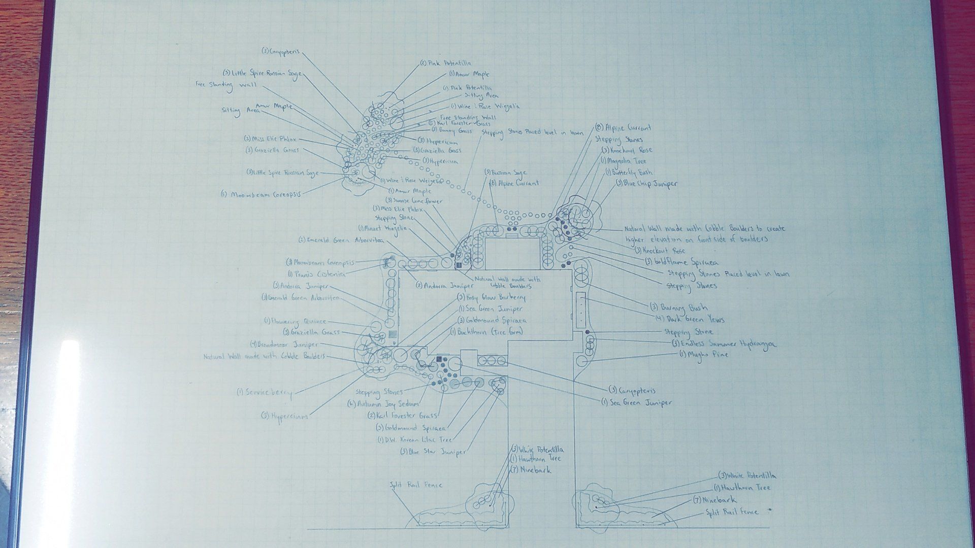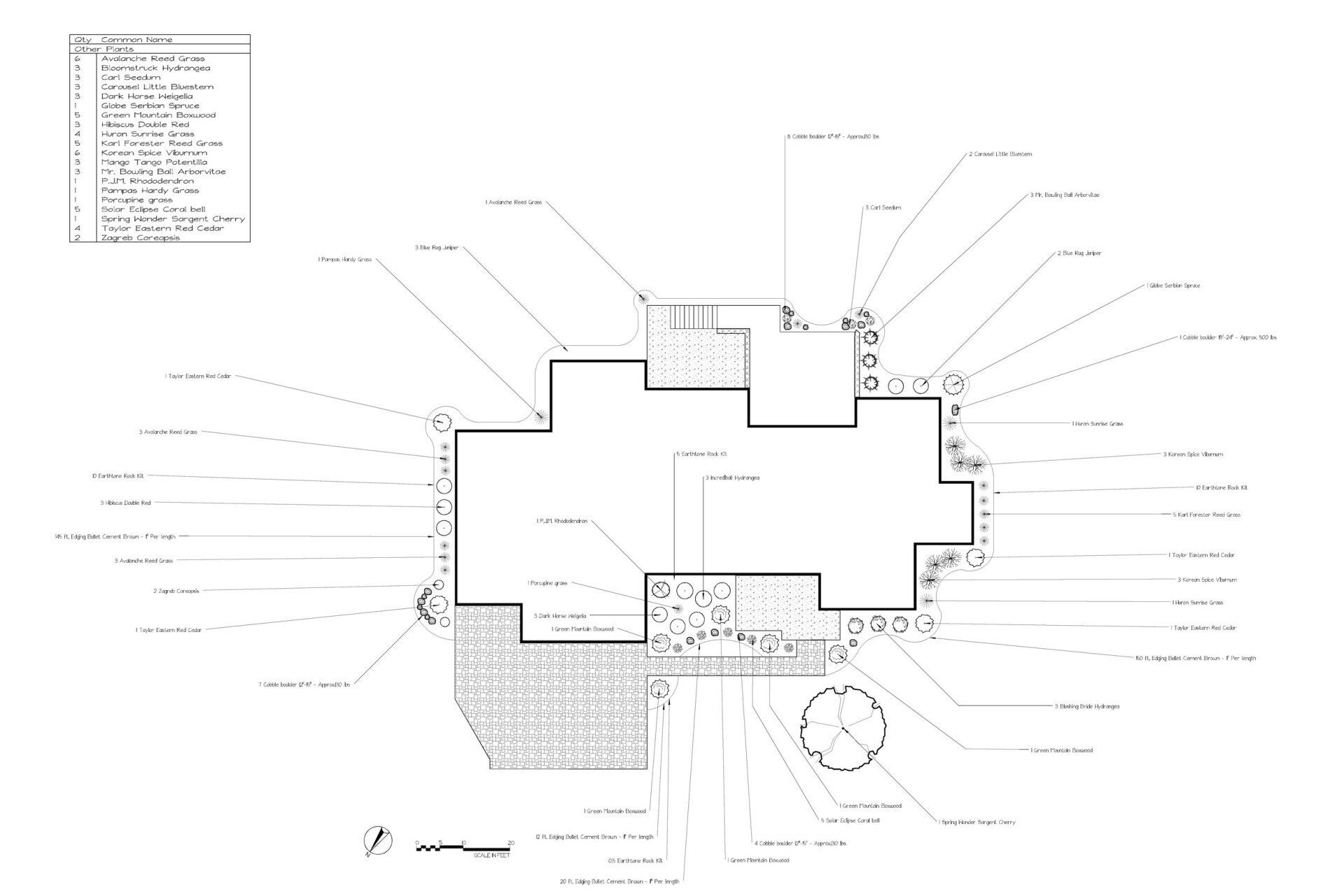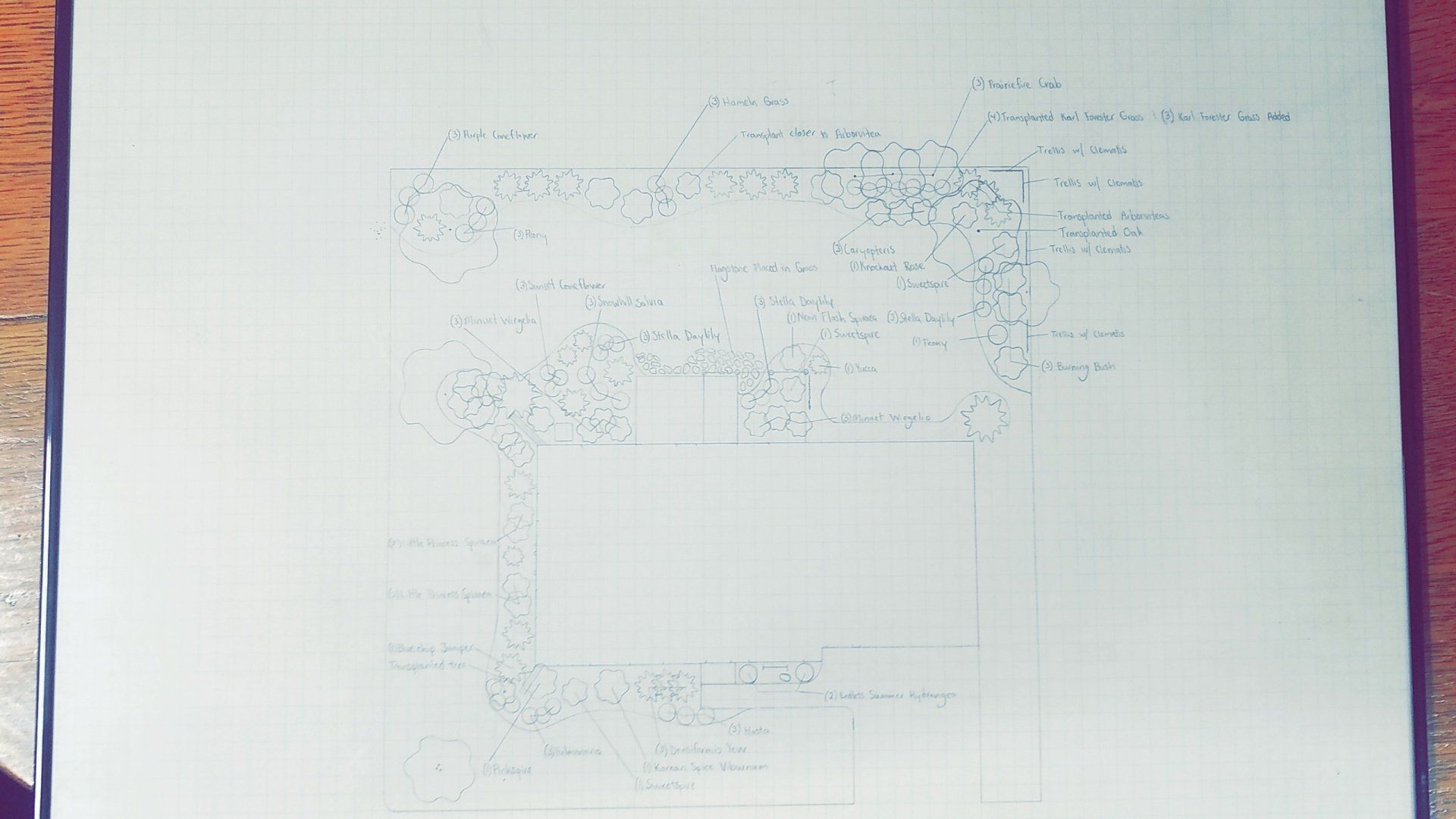 Using information gathered in the analysis state of the project and our experience in landscape design and construction, we develop the following: This drawing is done to scale and is all done by hand by a professional, experienced landscape designer.