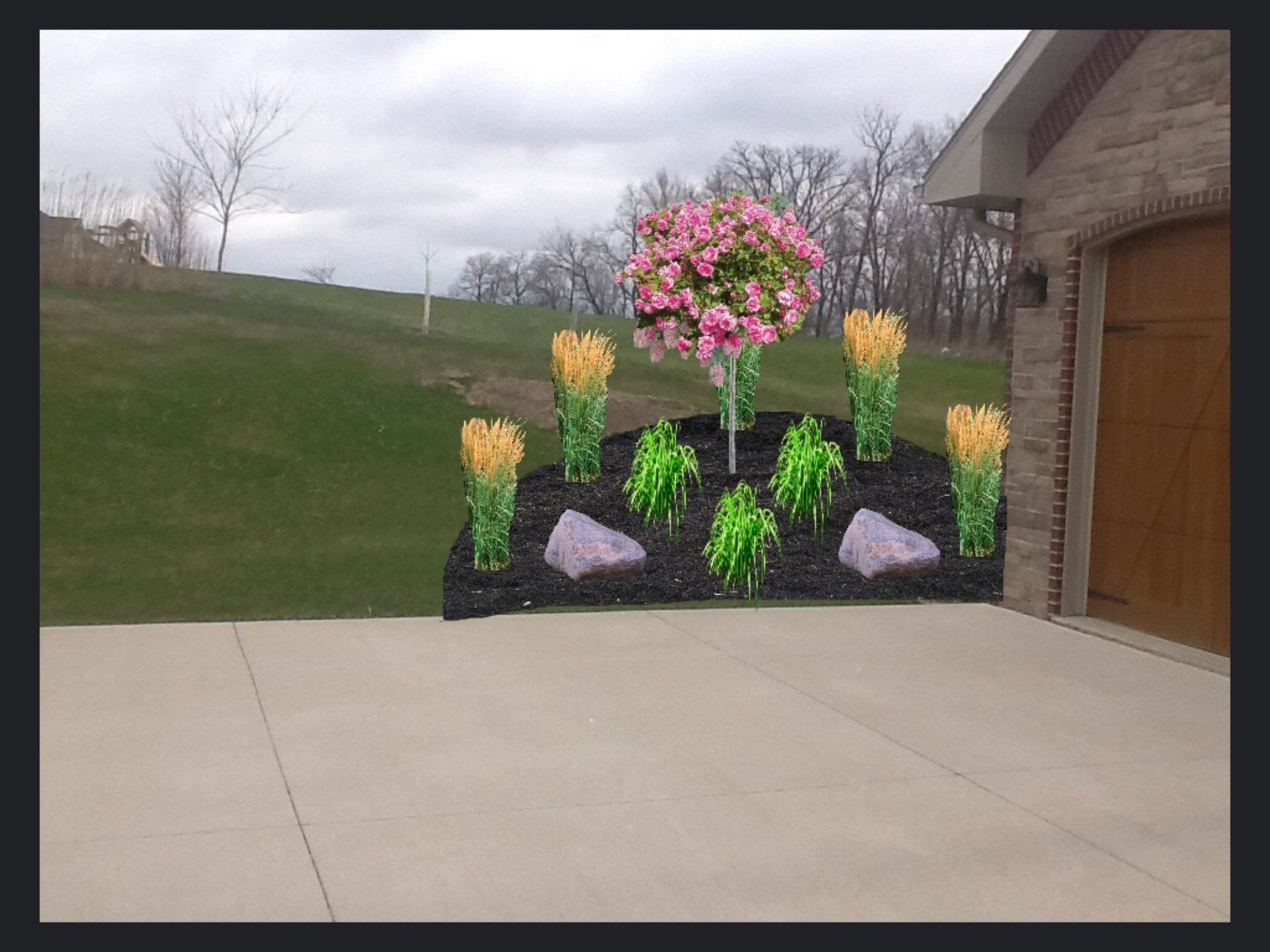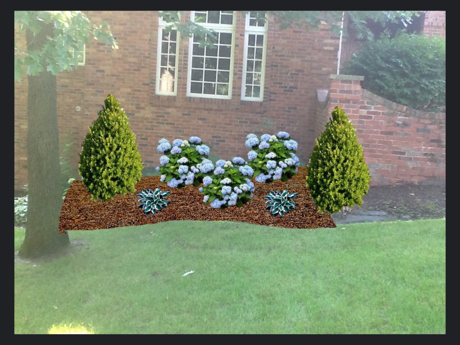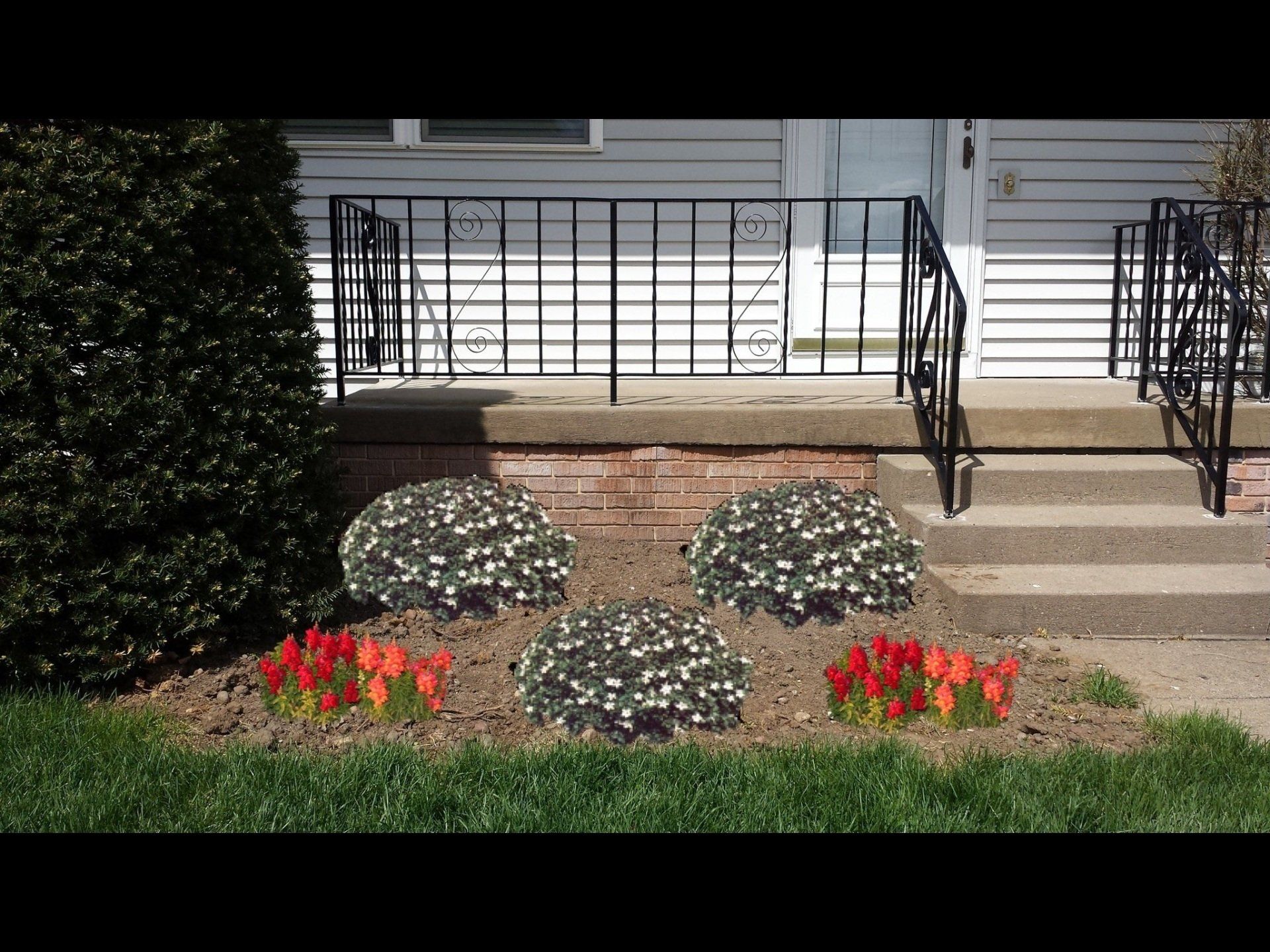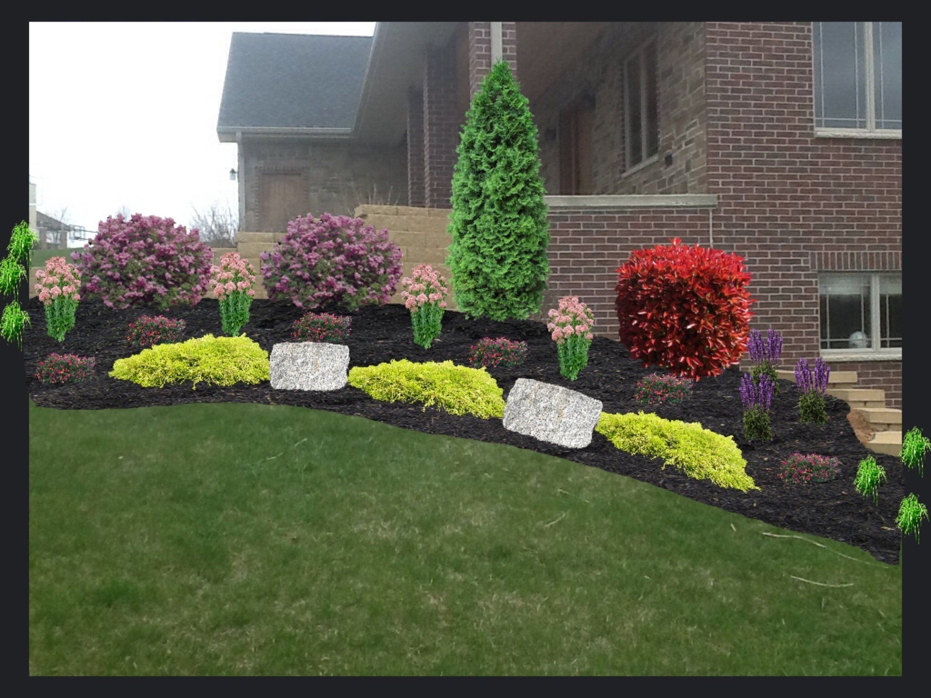 We have examples of this in the gallery to the left and below. To start, we take a physical picture of the actual spot on the site that will be designed. This picture can be of a bare spot or new construction or can be of an area that already has existing landscaping installed.
