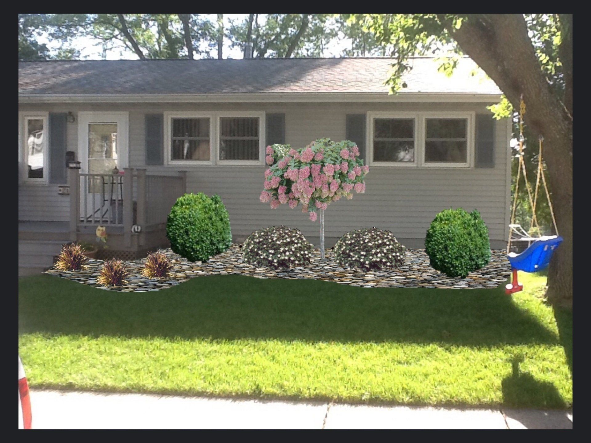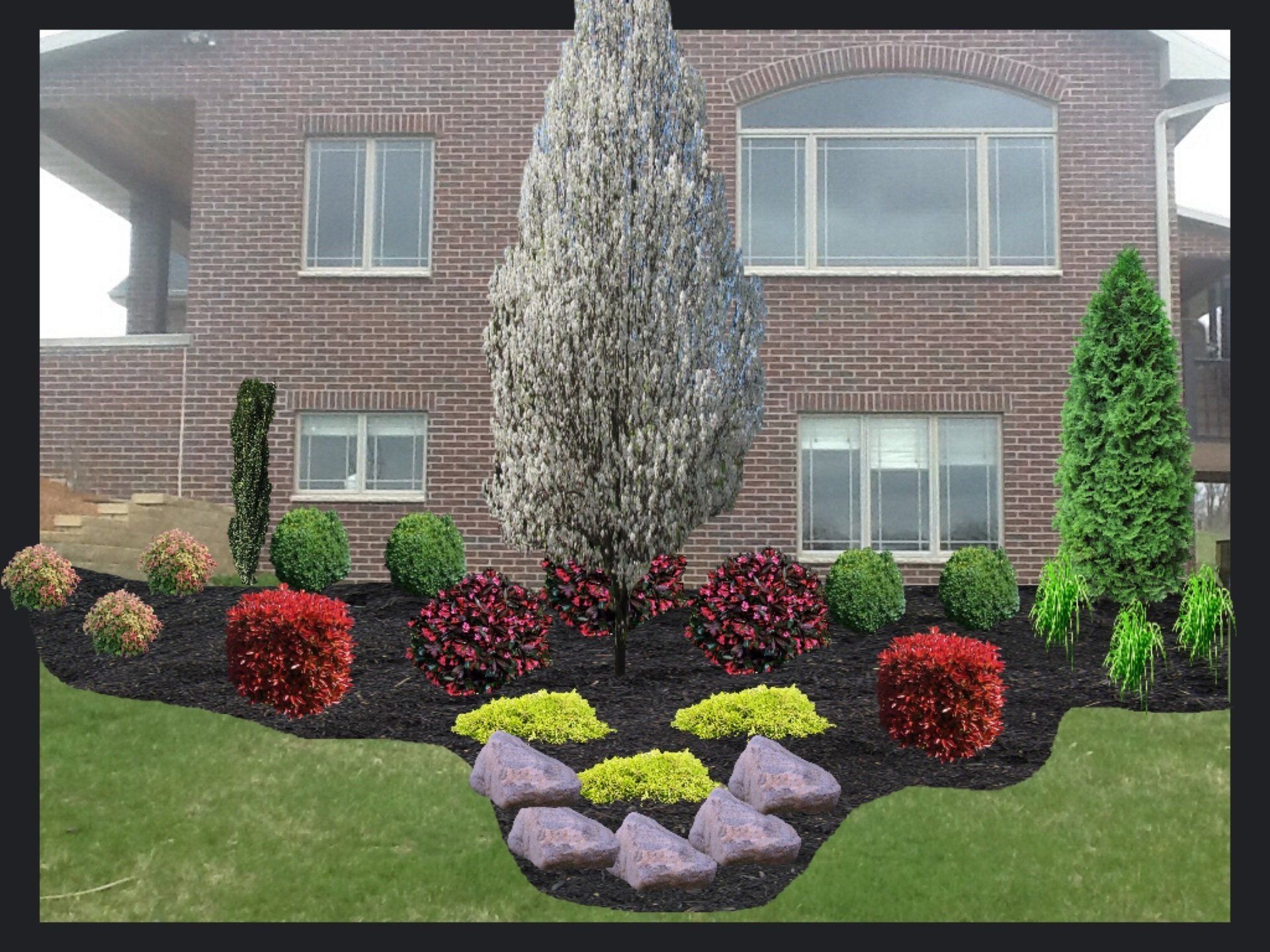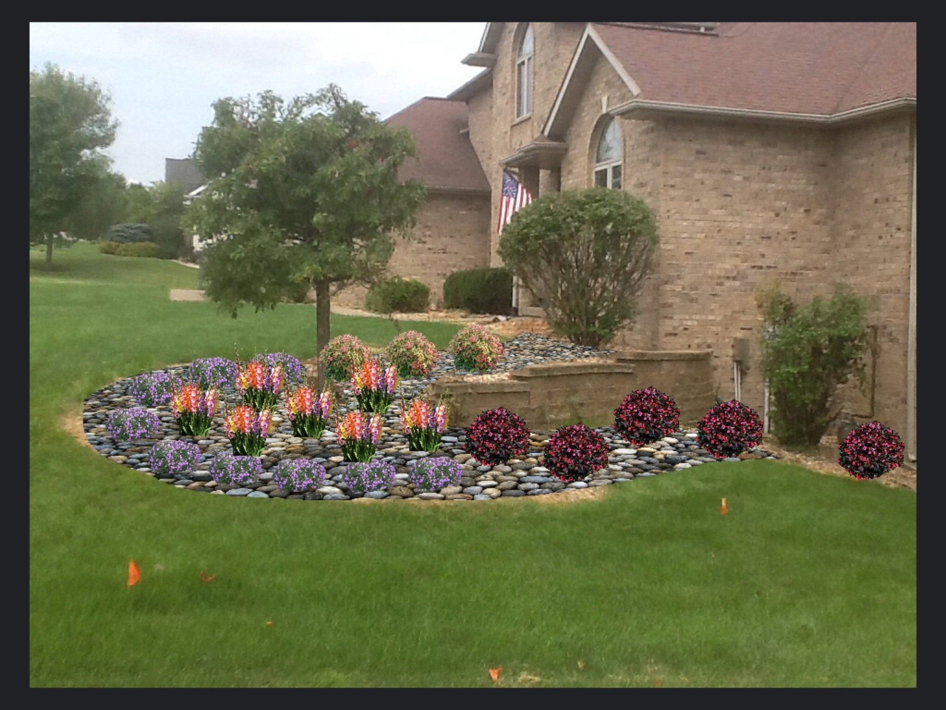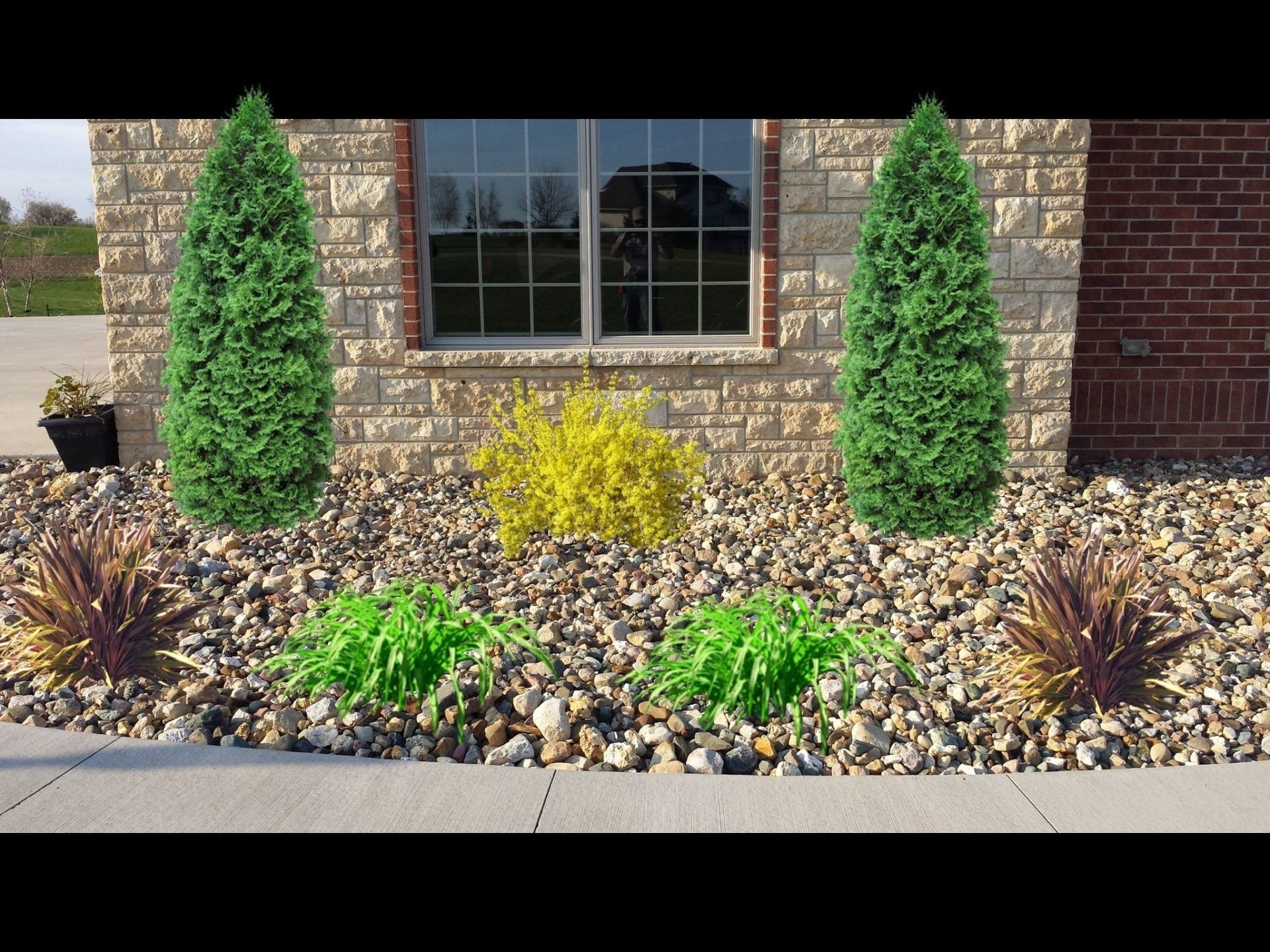 We have examples of this in the gallery to the left and below. To start, we take a physical picture of the actual spot on the site that will be designed. This picture can be of a bare spot or new construction or can be of an area that already has existing landscaping installed.